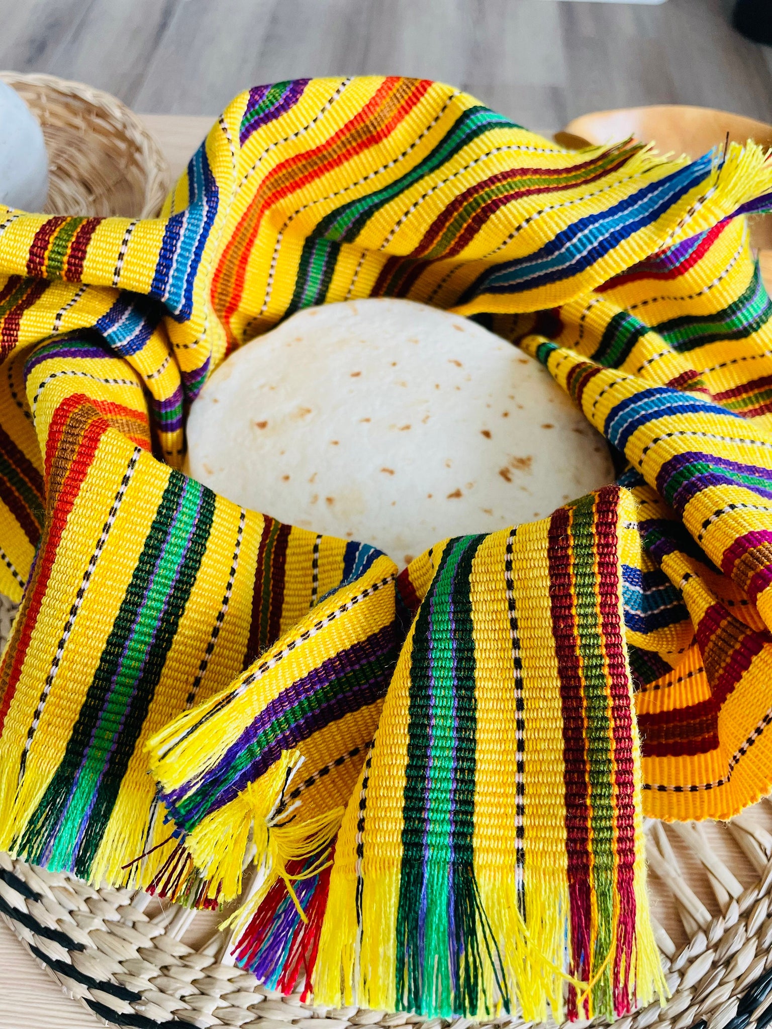 Beautiful Guatemala Mayan textile tortilla wrap.